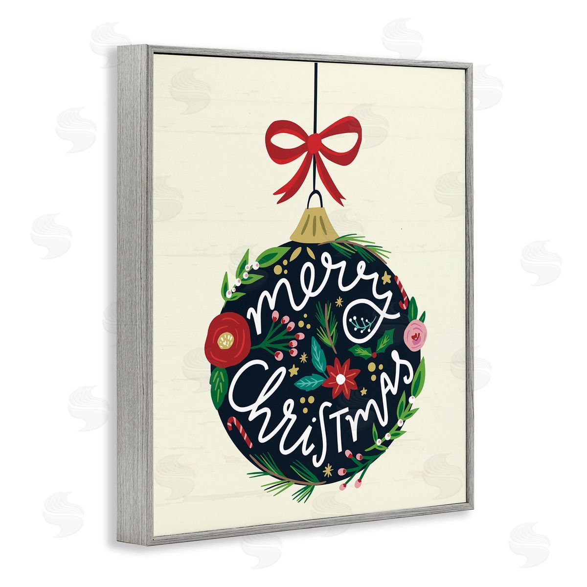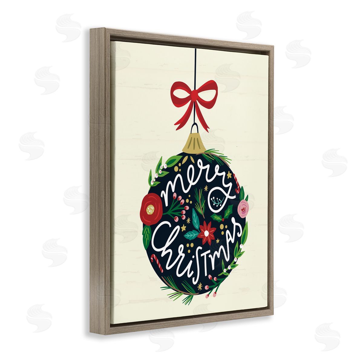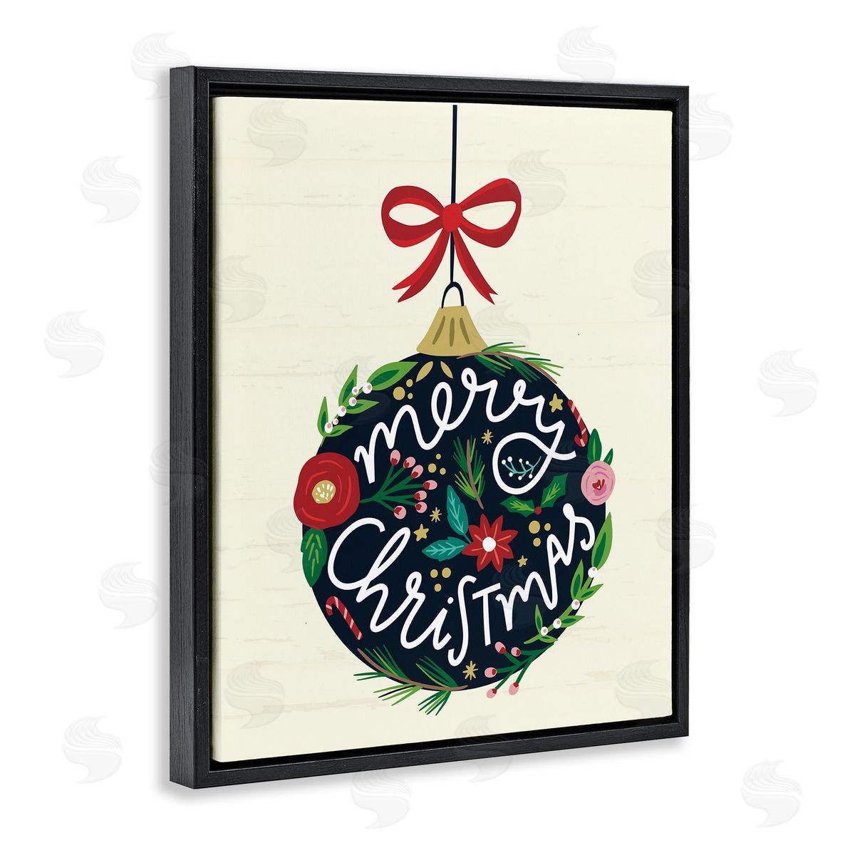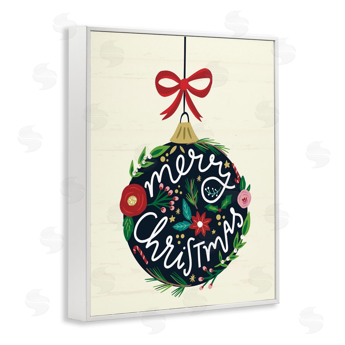 Louise Allen Designs | Merry Christmas Hanging Botanical Ornament Red Bow