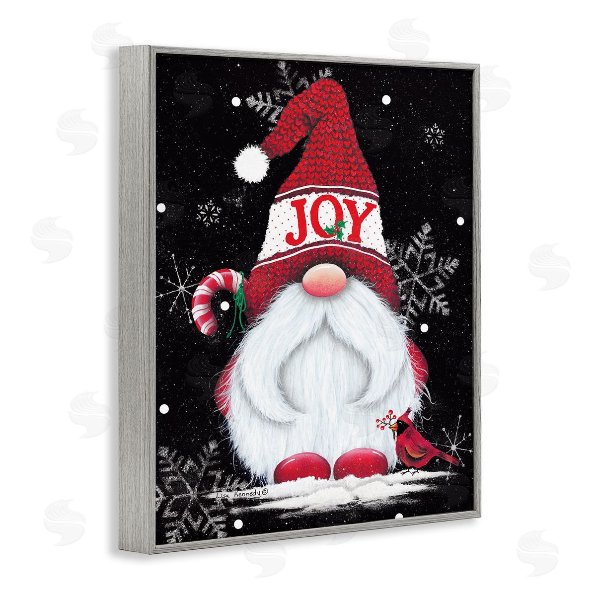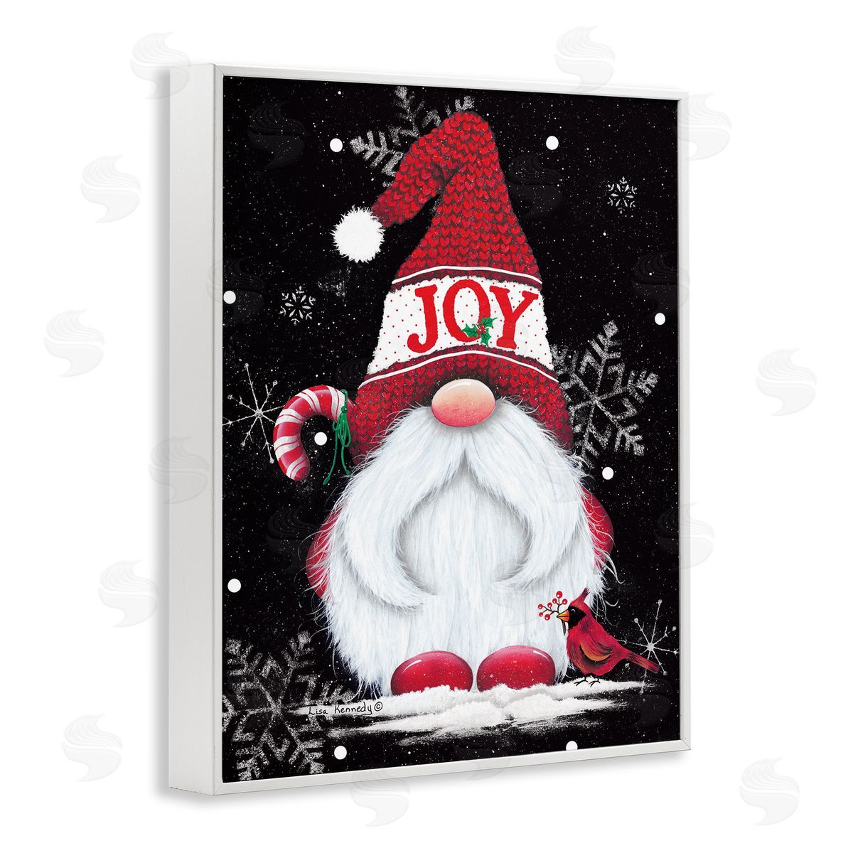 Lisa Kennedy | Red Holiday Gnome Candy Cane Snowflakes Pattern