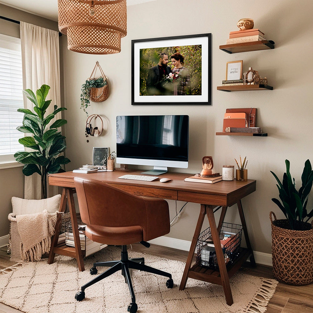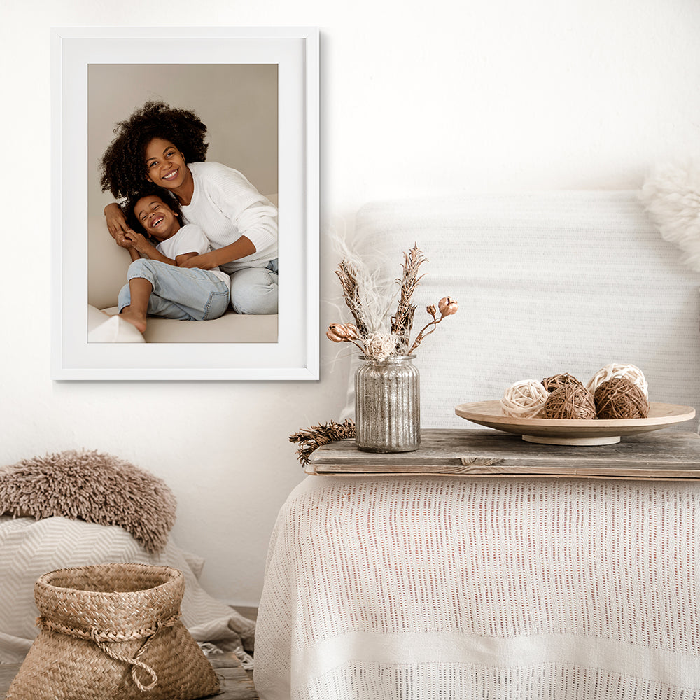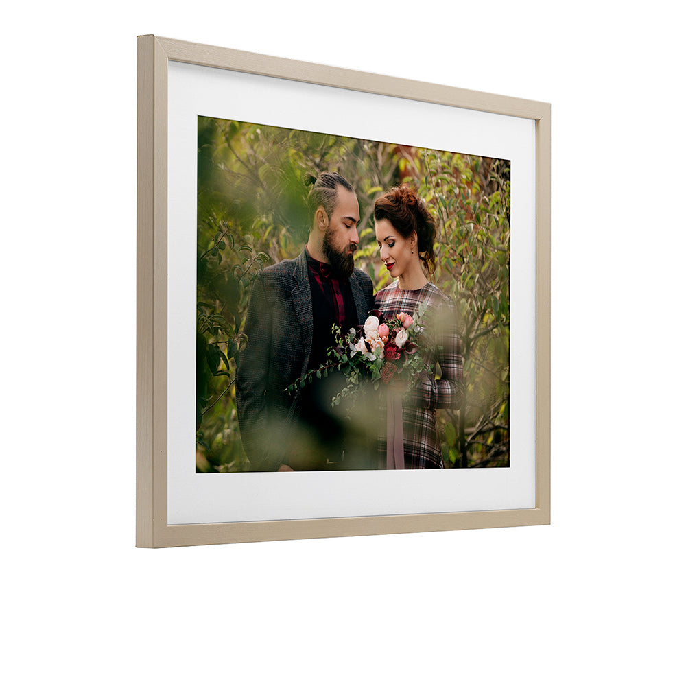 Our framed floating canvas prints are lightweight and simple to hang—no extra hardware required. Just install one or two nails into your wall and rest the frame’s ledge securely in place. The sturdy wooden frame provides balance and stability, offering the same effortless, clean display as our stretched canvas prints.