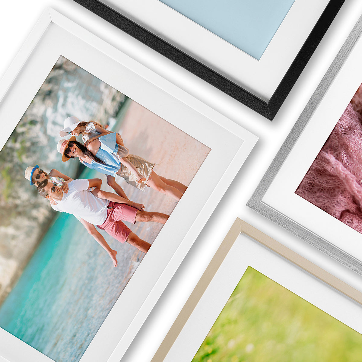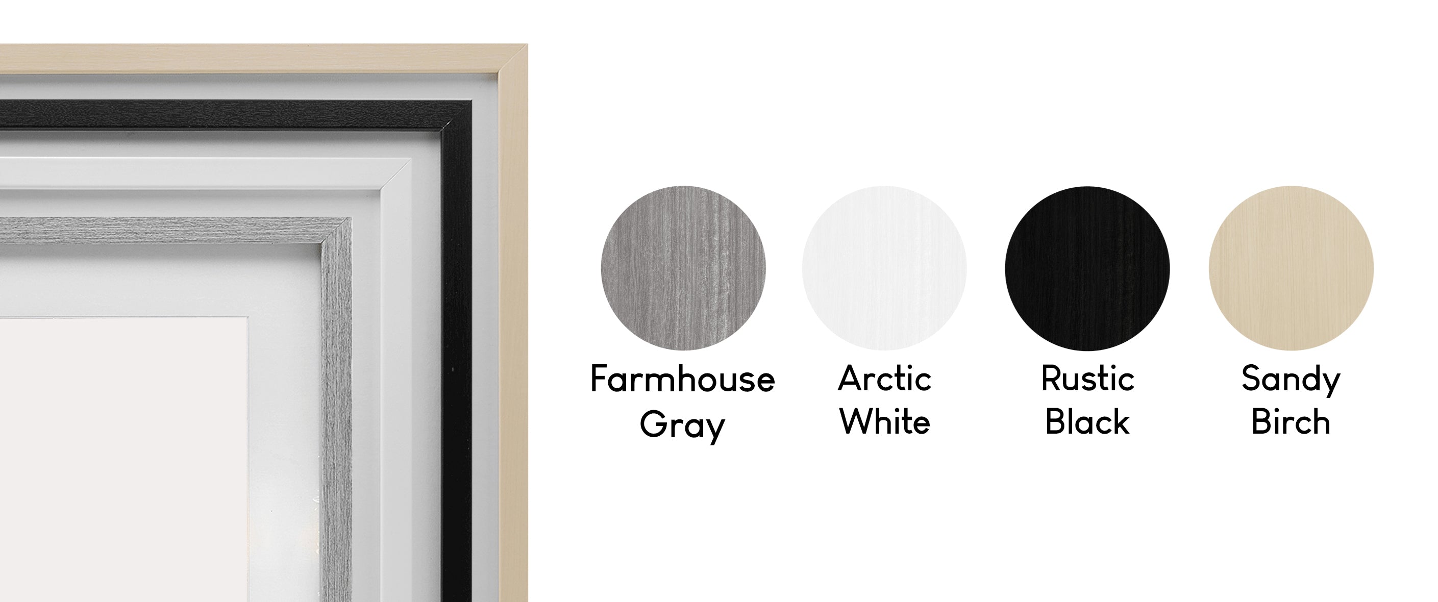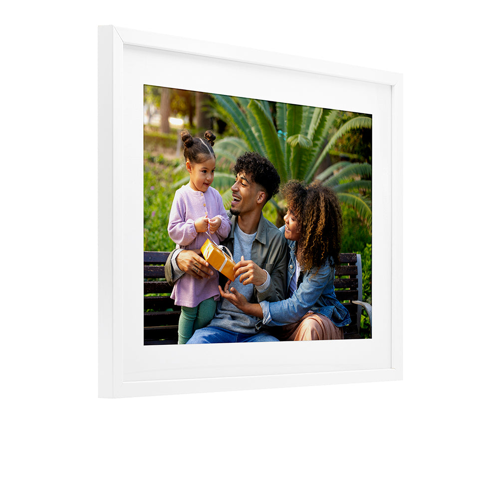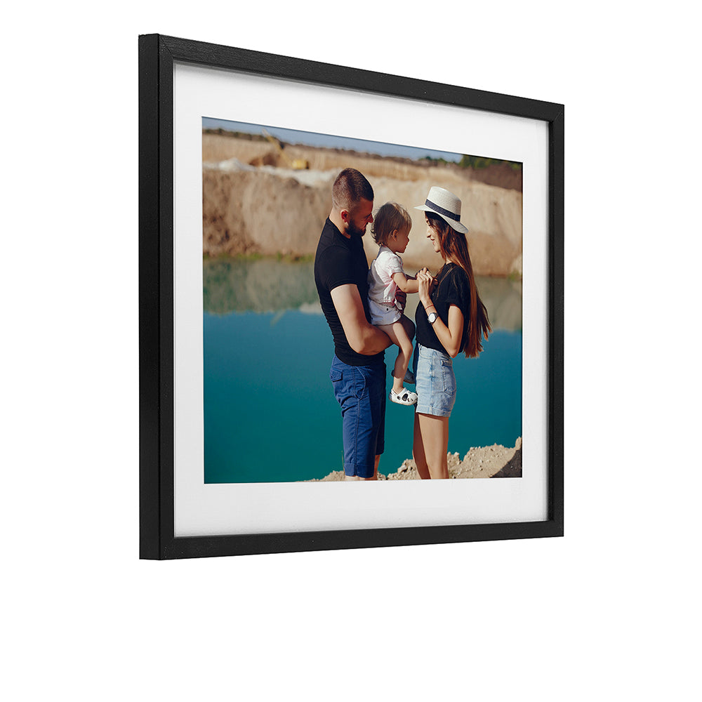 Framed floating canvas prints are available in four shapes, including a classic square and a dynamic range of rectangles suited to most common image ratios. Each piece is 1.7" thick, featuring a sturdy interior frame and a securely mounted floating frame for stability and durability. Some templates are designed for specific shapes and sizes to best complement the artwork. Floating frames are available in Jet Black, Barnwood Elm, Metallic Gold, and Luster Gray to match a variety of styles and spaces.