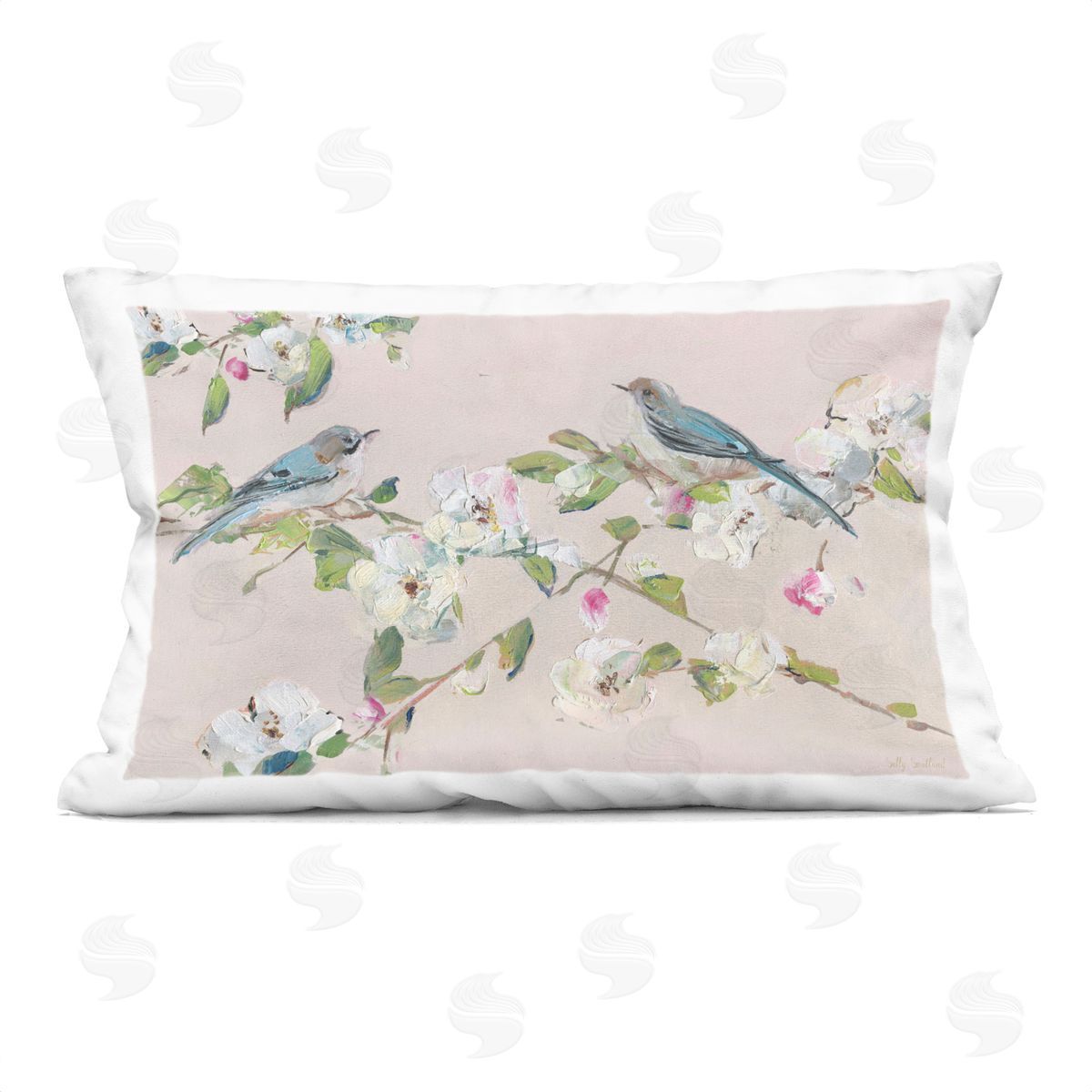 Sally Swatland | Spring Apple Blossoms & Birds Printed Throw Pillow