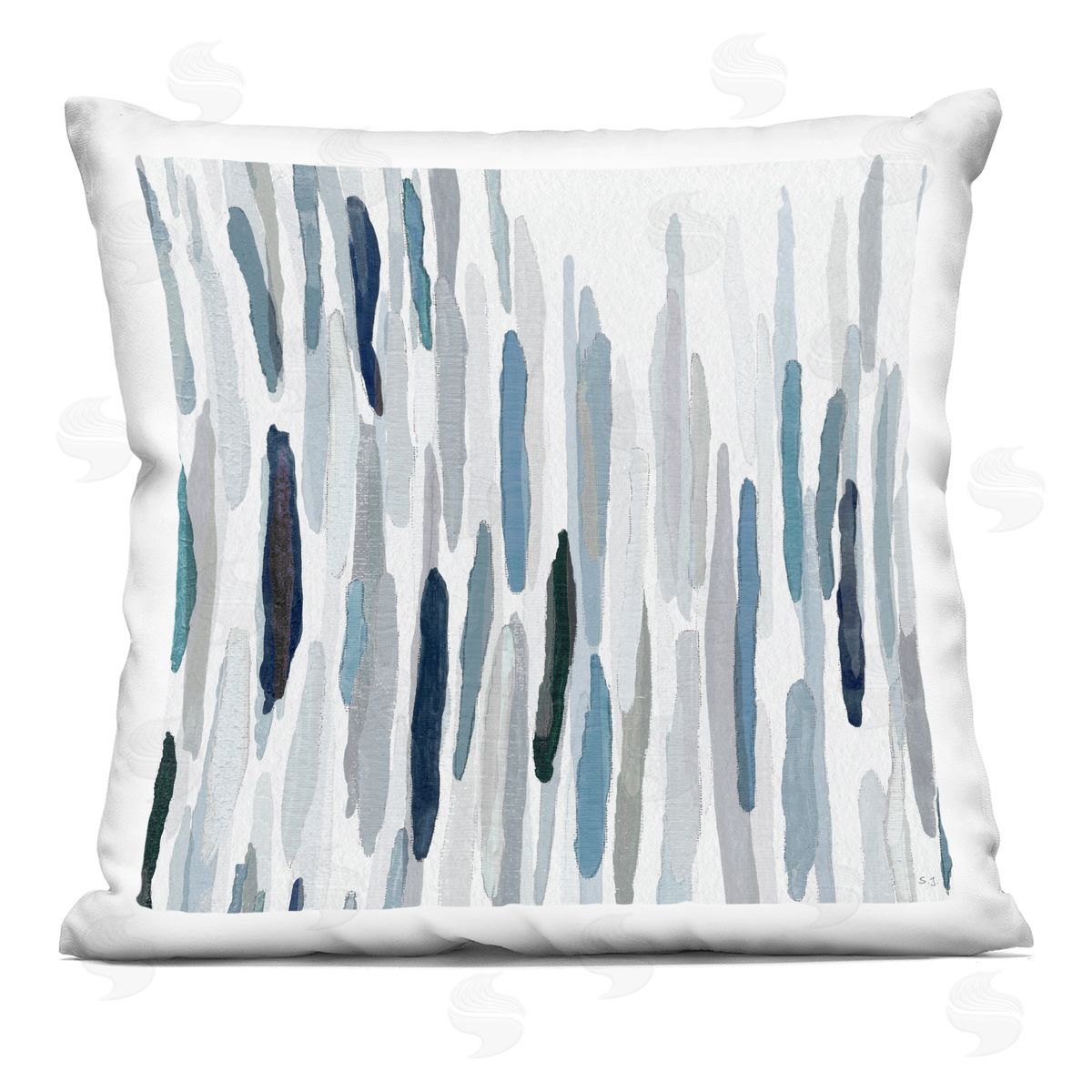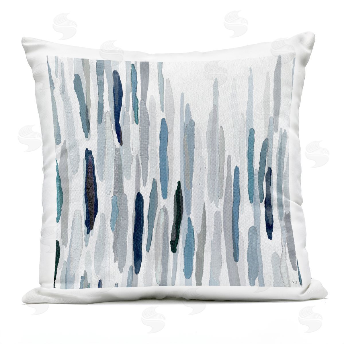 Susan Jill | Blue Varied Abstract Brushed Rainfall Lines Printed Throw Pillow