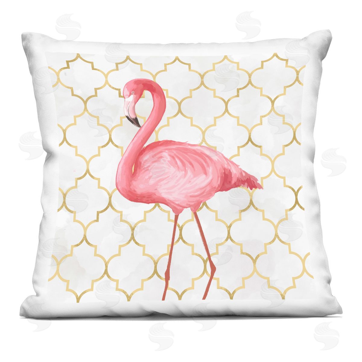 Ziwei Li | Pink Flamingo Animal Chic Gold Deco Pattern Printed Throw Pillow