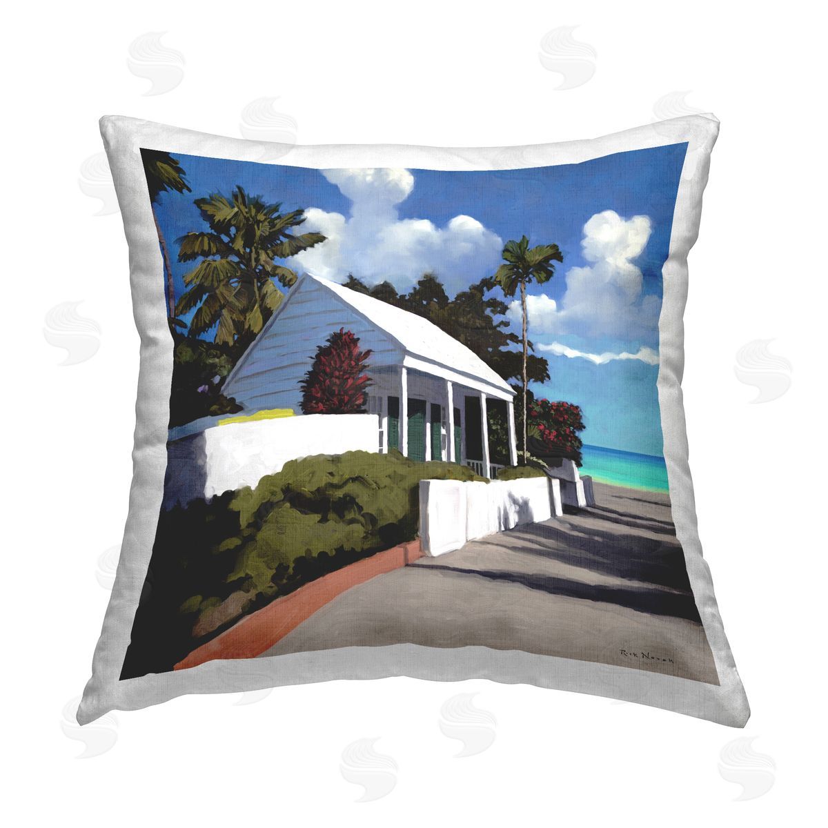 Rick Novak | Tropical Waterfront House Printed Throw Pillow