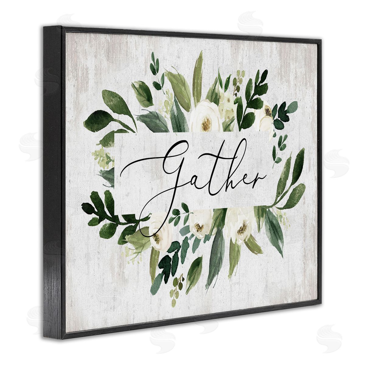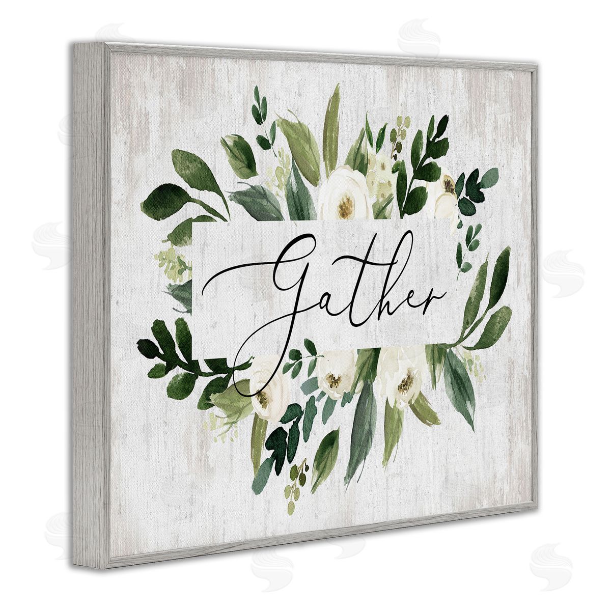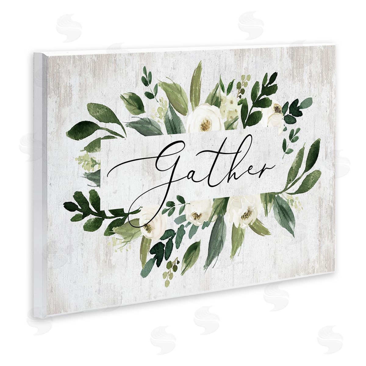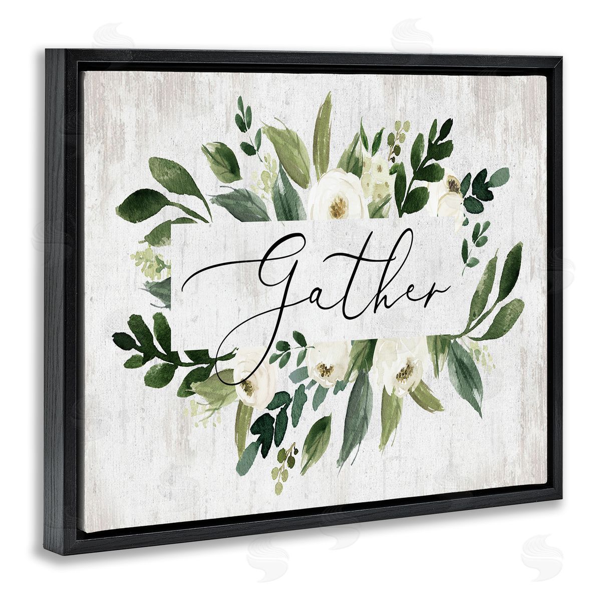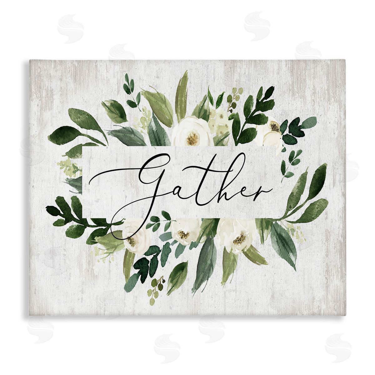 Lettered and Lined | Gather Text White Flower Green Botanicals Distressed Pattern