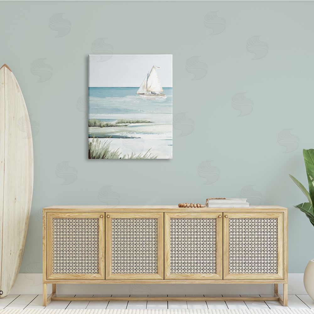Patricia Pinto | Sailing the Bay Soft Traditional Grassy Nautical Landscape